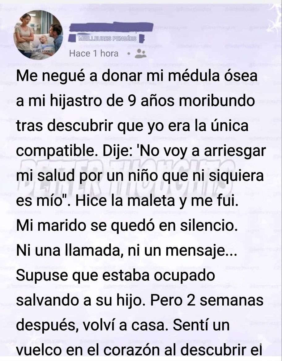 Me negué a donar mi médula ósea a mi hijastro de nueve años que estaba muriendo, después de que los médicos nos dijeron que yo era la única compatible. «Solo formo parte de su vida desde hace tres años», declaré con frialdad. «No voy a arriesgar mi salud por un niño que ni siquiera es … Read more